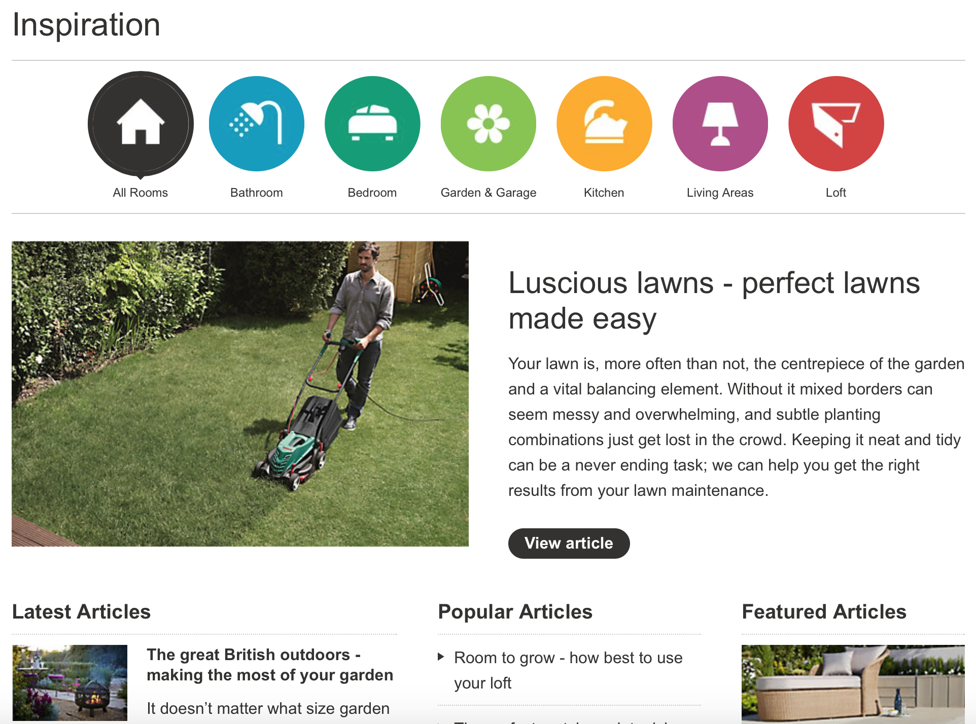 B&Q’s ‘Inspiration’ section, for example, gets regularly updated with new articles about how to care for your home and garden, with convenient DIY advice too. The blogs are written with a ‘here-to-help’ tone of voice, but aren’t afraid to mention the names of select B&Q products that would help with the job.